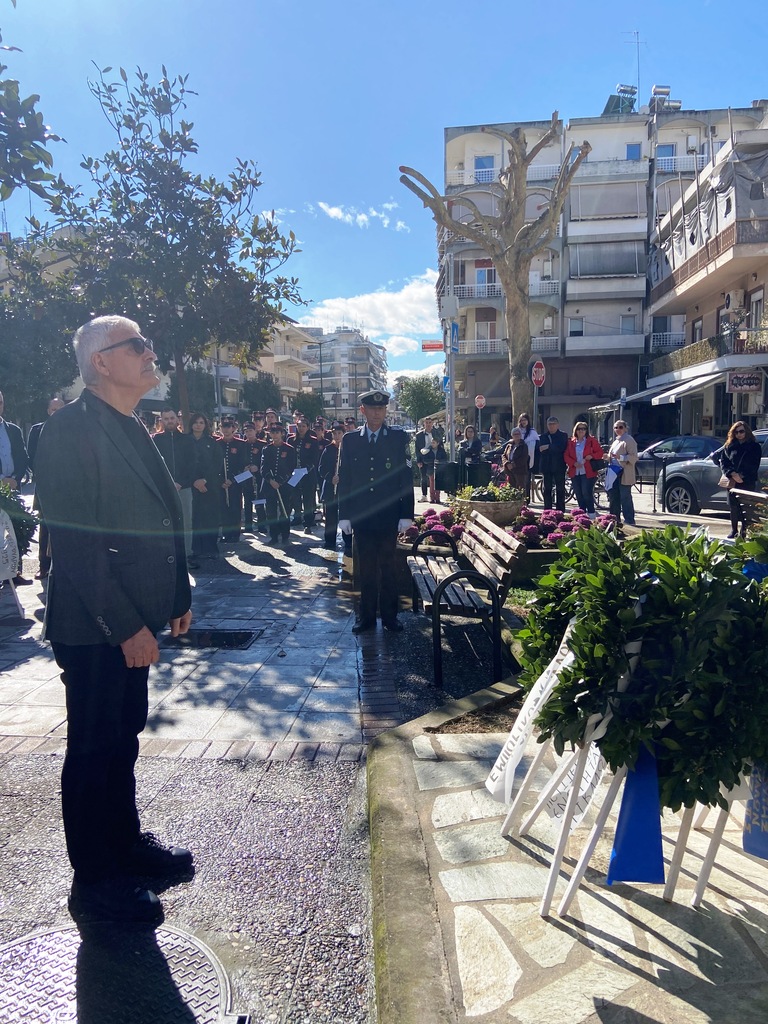 Τον Εθνικό Υμνο και το εμβατήριο “Επέσατε Θύματα” παιάνισε η Δημοτική Φιλαρμονική Τρικάλων.