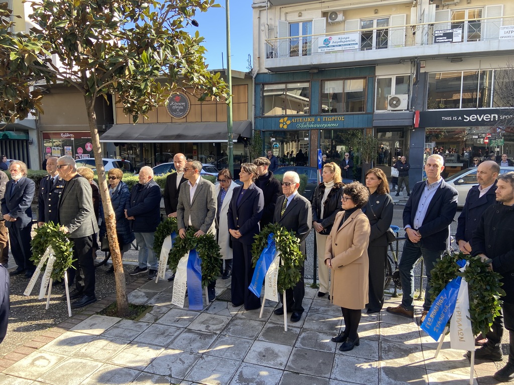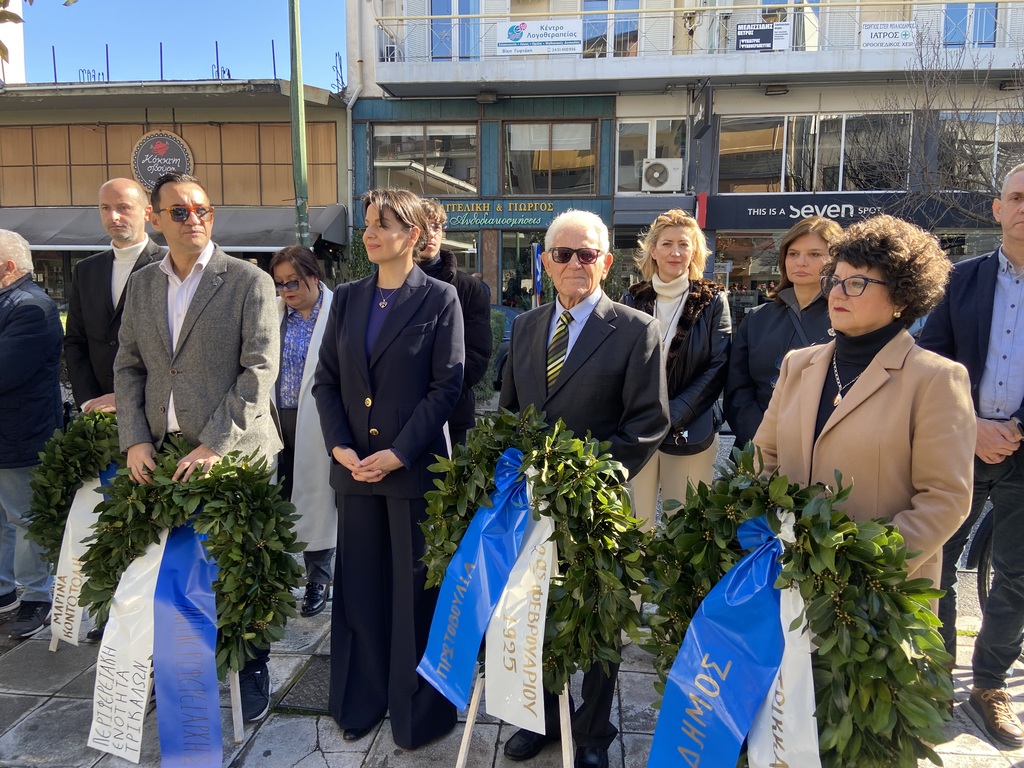 Ακολούθησε κατάθεση στεφάνων, από τη βουλεύτρια του ΣΥΡΙΖΑ – ΠΣ Μαρίνα Κοντοτόλη, την Έφη Λεβέντη για τον Δήμο Τρικκαίων, τον Θανάση Ξάφο, εντεταλμένο σύμβουλο διά βίου μάθησης της Περιφέρειας Θεσσαλίας, τον Αστυνομικό Υποδιευθυντή της Δ/νσης Αστυνομίας Τρικάλων κ. Γιώργο Τσιώλη, αντιπρόεδρο του Εμπορικού Συλλόγου Τρικάλων κ. Θανάση Φαλτάκα, τον κ. Αντώνη Λάππα, πρόεδρο του Γεωπονικού Συλλόγου Τρικάλων τον υποναύαρχο ε.α. κ. Νικόλαο Γκόγκο,  εκπρόσωπο της πρωτοβουλίας για την Αγροτική-Λαϊκή εξέγερση της 2ας Φεβρουαρίου 1925.