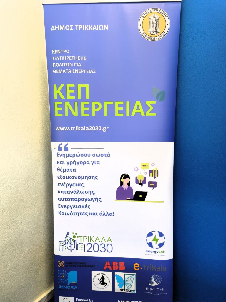 Το Κέντρο είναι τμήμα του έργου “Energy4All” για τη δημιουργία Κόμβου Κλιματικής Ουδετερότητας στην πόλη των Τρικάλων.