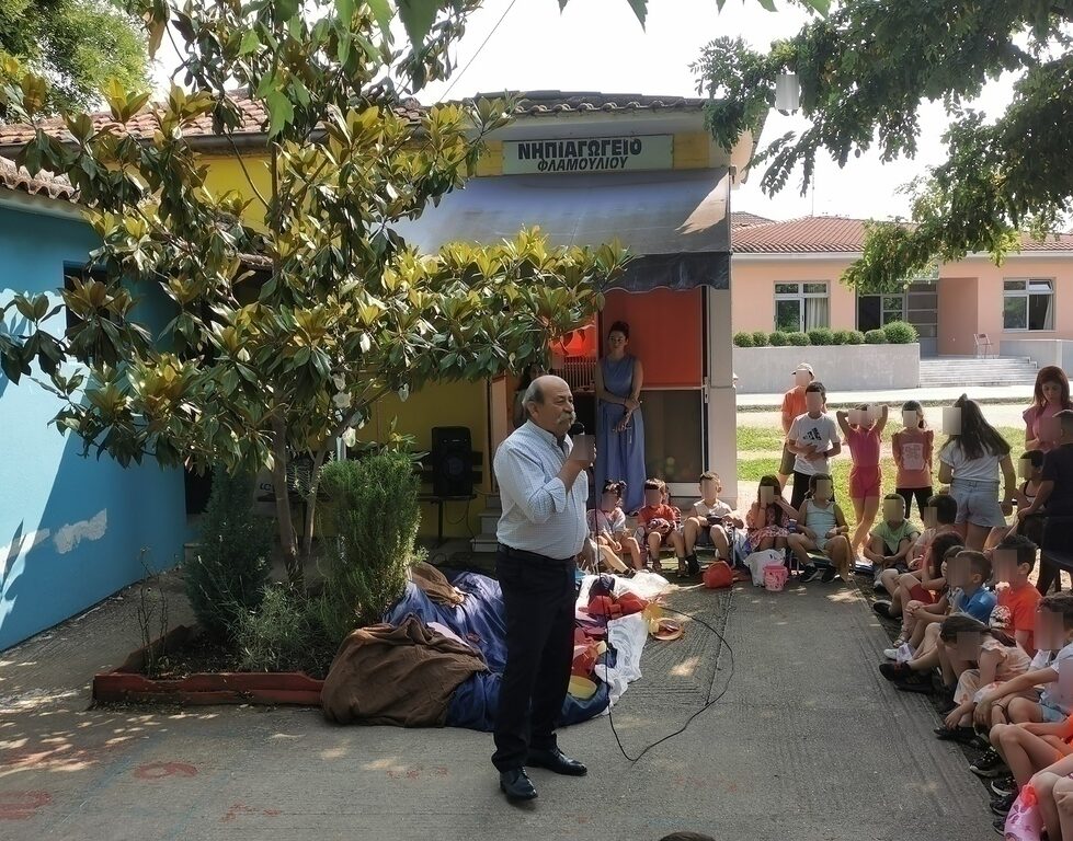 Μιλώντας ο ίδιος την Παρασκευή 6 Ιουνίου 2025 σε παιδιά και γονείς – κηδεμόνες, με απλά λόγια εξέφρασε ακριβώς την ανάγκη να στηριχθεί το σχολείο, το Νηπιαγωγείο Φλαμουλίου, σε μια περιοχή που τμήμα της επλήγη από τον Daniel – όπως και ο ίδιος.