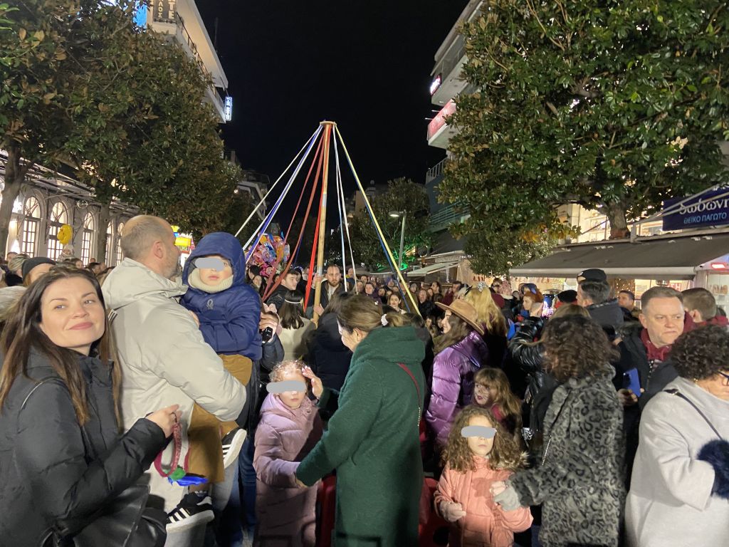 Το δωρεάν κρασί έρεε άφθονο, δίνοντας ακόμα μεγαλύτερο κέφι στη γιορτή, ενώ μικροί και μεγάλοι συμμετείχαν στον ξέφρενο χορό, τιμώντας την παράδοση της Αποκριάς.