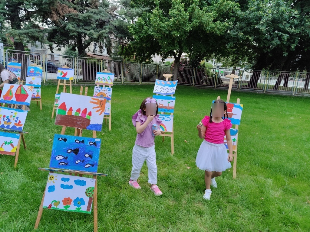 Η εκδήλωση έκλεισε με τις μοναδικές δημιουργίες των μικρών ζωγράφων πάνω στα καβαλέτα, δημιουργώντας μια αίσθηση πραγματικής γκαλερί! Επιμέλεια εικαστικών από την Γιάννα Αλεξίου, νηπιαγωγό. Η αφίσα – προσκλήσεις – πρόγραμμα έγινε από τον Γιώργο Μανδράκη, καθηγητή πληροφορικής. Την παρουσίαση και τον συντονισμό της εκδήλωσης είχε η κ. Βιβή Νικολάου, υπεύθυνη του ΚΔΑΠ Σταθμός του Δήμου Τρικκαίων.